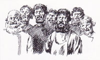 ...относительно внешнего облика Левши. У писателя он рисуется симпатичным, скромным, но знающим себе цену мастером, с чувством собственного достоинства. Нужно ли его изображать непременно косоглазым? «Косой Левша» – это, может быть, всего-навсего прозвище. Если подчеркнуть косоглазие Левши, то получится уродливый облик с жуликоватым, бегающим взглядом («Бог шельму метит»). Поэтому, чтобы сохранить симпатичный облик Левши, мне пришлось отказаться от подчеркивания косоглазия.